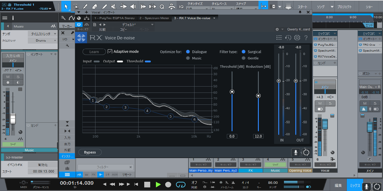 録音時のノイズが入った場合や、「ぺちゃ」「くちゃ」などのリップノイズを除去する際に使用。