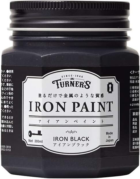 これを塗ると、なんでも鉄のように仕上げてくれる魔法の塗料として有名。これ、めちゃ楽しいんです。刷毛でペタペタ塗って3時間くらい扇風機をあてて乾かすだけ。簡単です。