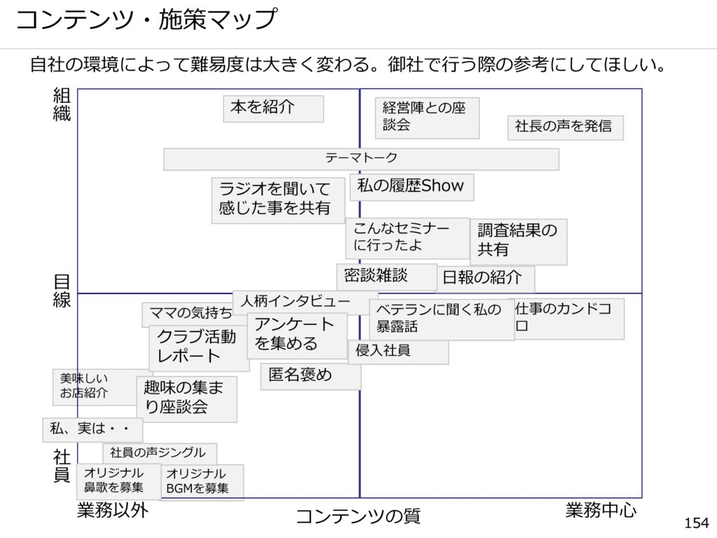 一部の社員が楽しんで行っているものの、社内で認められるコンテンツに成長しないという状態になっているということはよく聞きます。このケースは弊社の取り組みではありませんが、聞いたお話ですので、紹介。