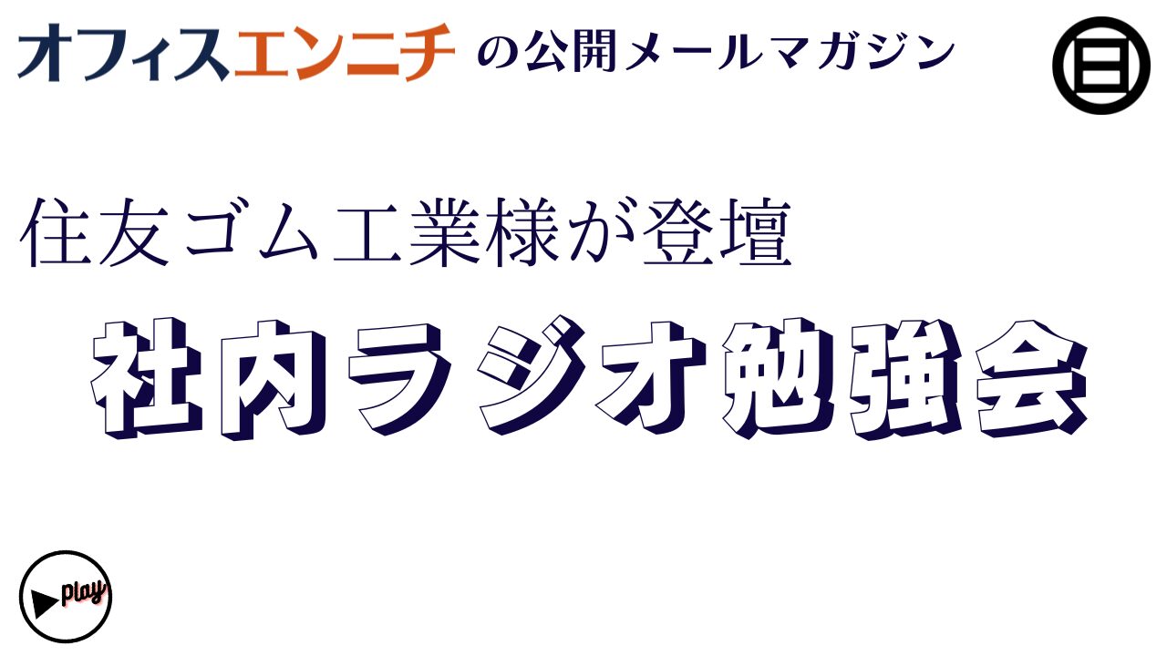 (おそらく)日本ナンバーワン社内ラジオ事業者である、オフィスエンニチがお送りするメールニュースです。お知らせが不要な方は、stakama@office-ennichi.comまでお知らせ下さい。