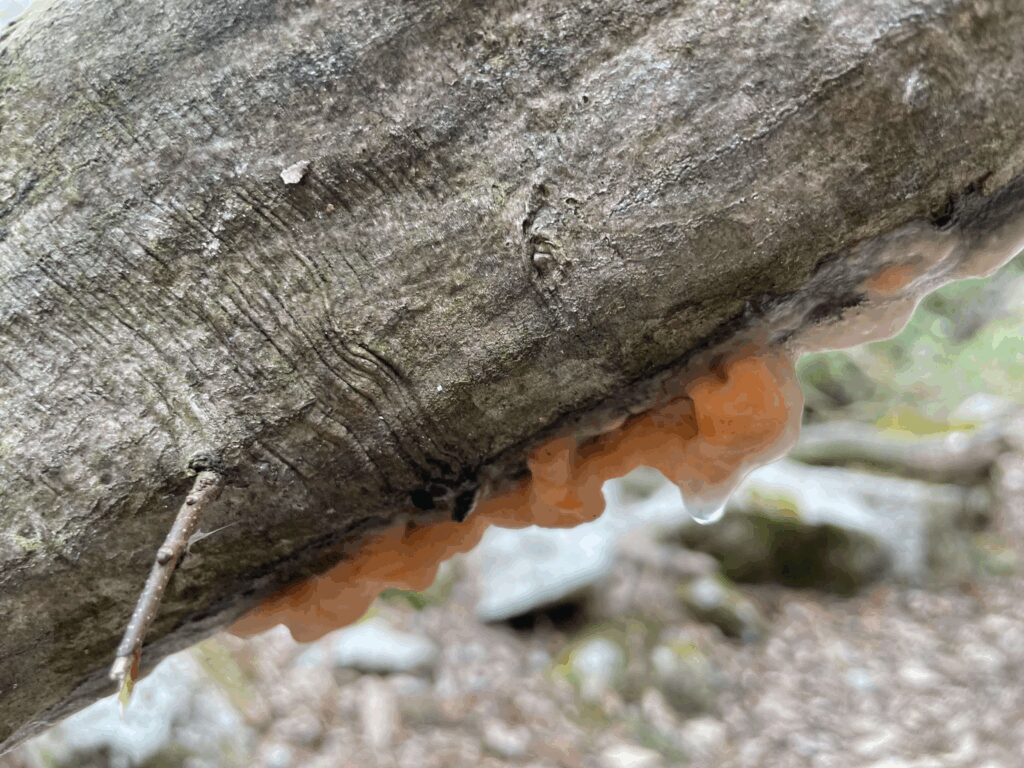 また、未知の体験もさせてくれるのが山でもある。歩いている途中で木の幹から滴る樹液を発見。
